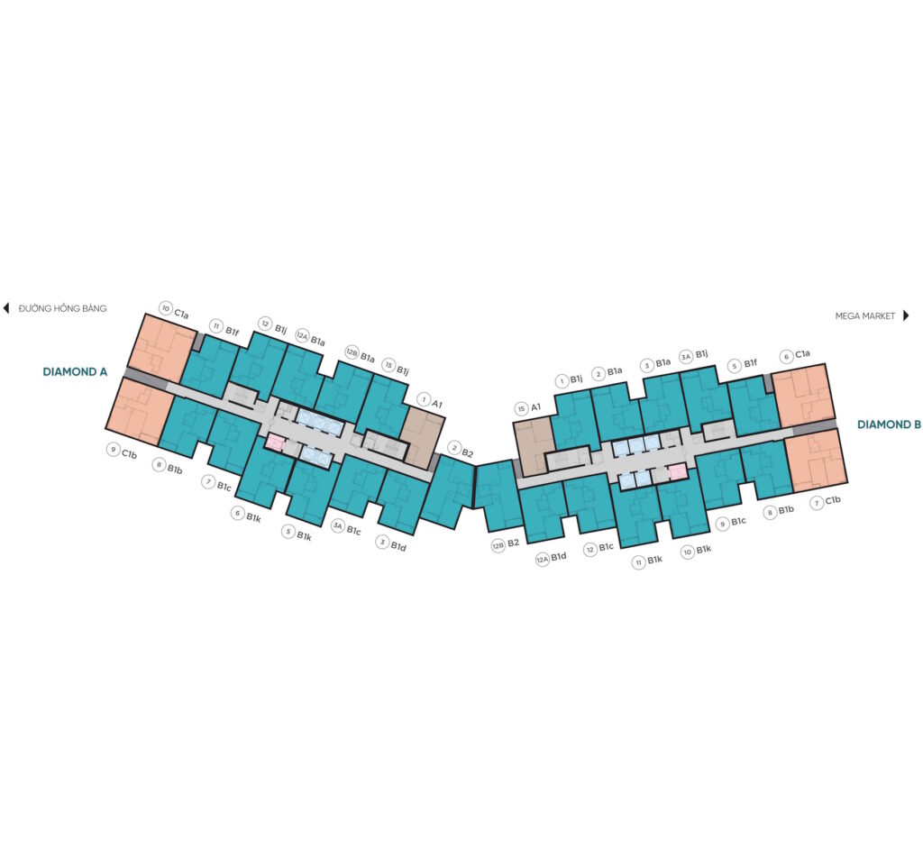 – Các tòa tháp: Diamond A, Diamond B, Sapphire, Ruby